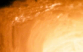上面的小炉炉脖的损坏已经造成小炉炉脖砖体剥蚀透火,危及小炉炉脖碹角钢的保护。维修后,所有剥蚀的砖体得以填充焊补,小炉炉脖的结构得以恢复,保证窑炉更长寿命和安全运行。